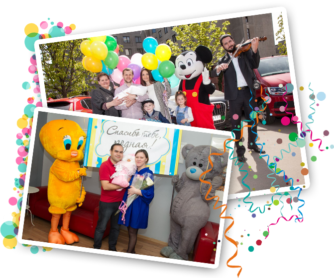 Предлагаем оформить выписку из Одинцовского родильного дома шарами, ростовыми куклами и музыкантами